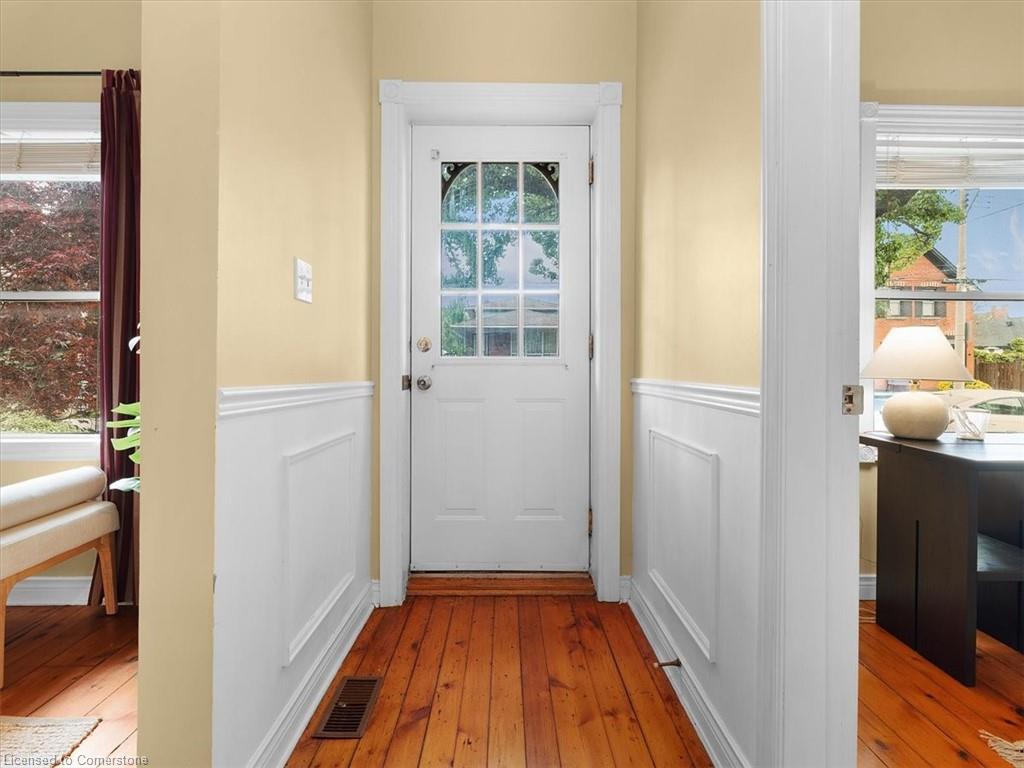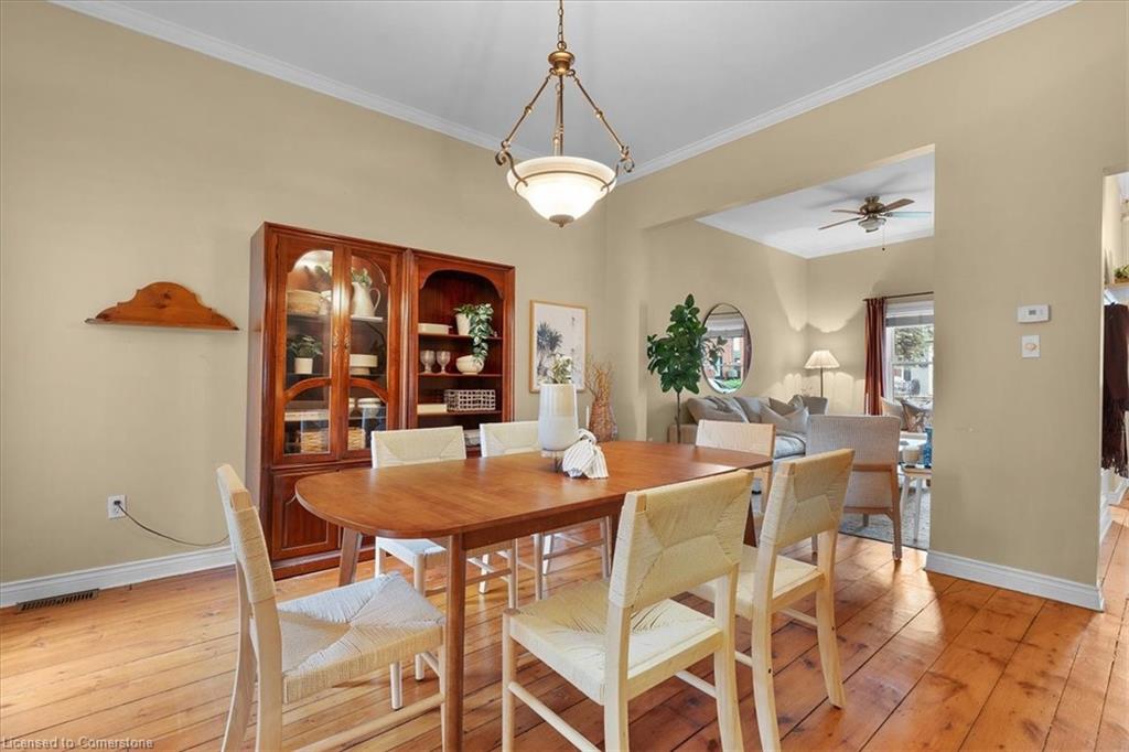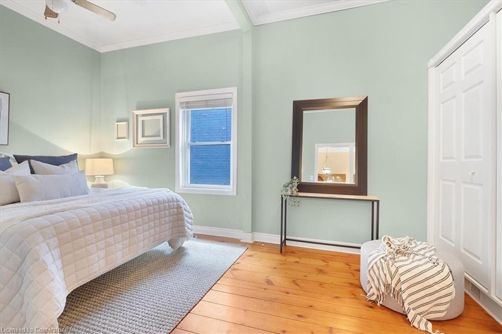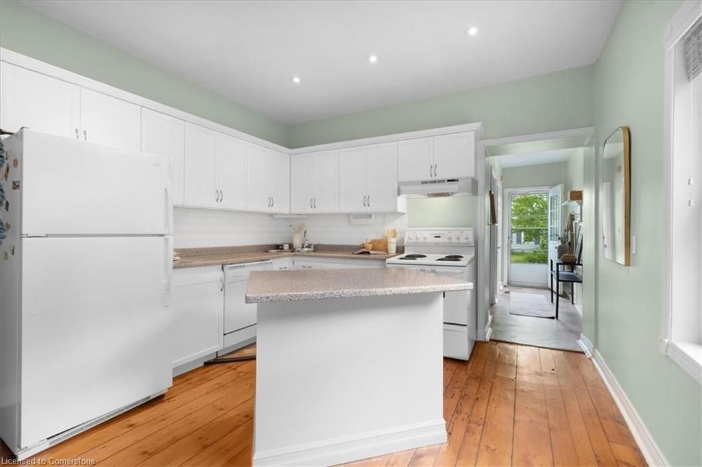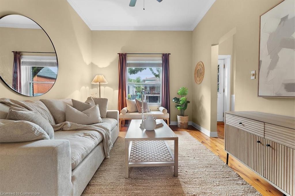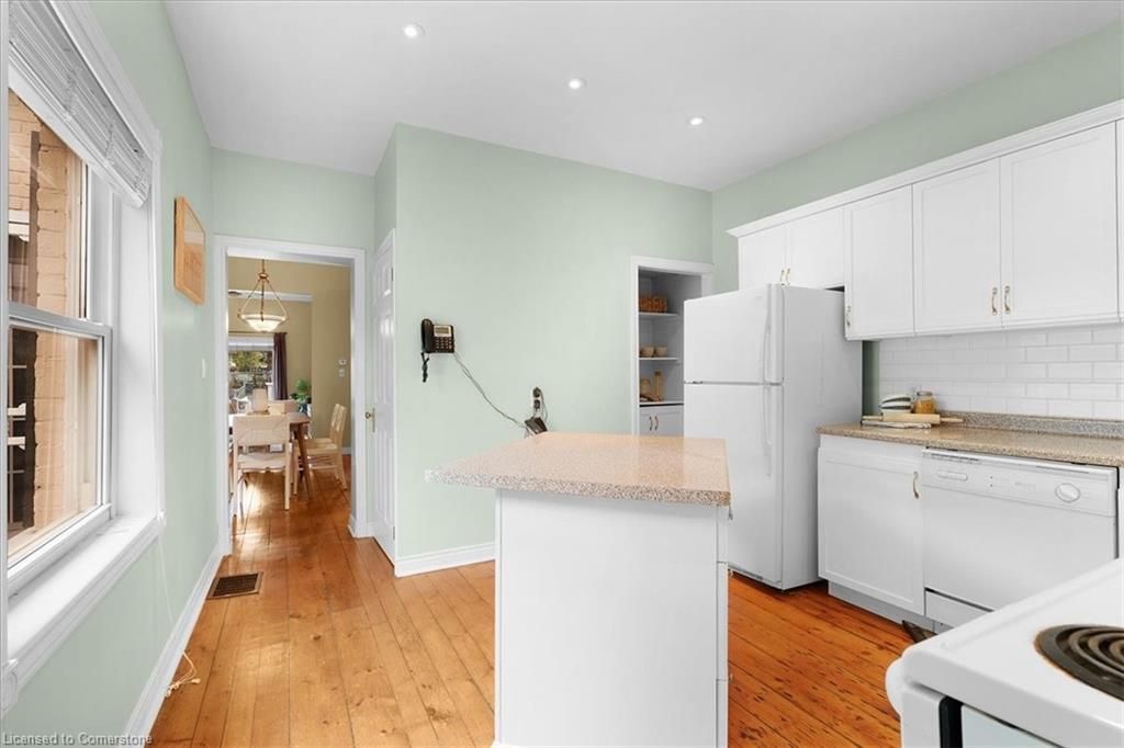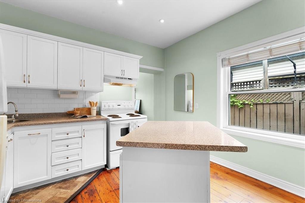 Welcome to this picture-perfect Victorian cottage bungalow, nestled in one of Hamilton’s most sought-after and established neighbourhoods just steps from the vibrant waterfront at Pier 4 and Pier 8, the GO Station, and the iconic James North Art District. Lovingly maintained and full of character, this home blends timeless details with classic comfort. Soaring ceilings, wide plank hardwood floors, and a thoughtful layout make this 2-bedroom home feel spacious and bright. The main floor features a cozy living room, separate dining room, updated kitchen with a central breakfast island, and a full 4-piece bathroom, all filled with natural light and historic charm. A true rarity, the finished lower level includes a separate walkout entrance, spacious rec room, 2-piece bathroom, laundry, and a versatile workshop or studio space perfect for creatives, hobbyists, or future in-law suite potential. Enjoy morning coffee or evening bevy in the private, lush backyard, a peaceful retreat in the heart of the city. Tucked at the rear of the property, you’ll also find an oversized workshop perfect for hobbyists or makers. Previously used as a woodworking studio, this versatile space offers endless potential for creative pursuits, storage, or even future conversion. Whether you’re a first-time buyer or looking to downsize without compromise, this home offers the perfect blend of character, convenience, and location. Just steps from Hamilton’s best trails, cafes, galleries, and waterfront parks, this is a lifestyle opportunity you don’t want to miss!