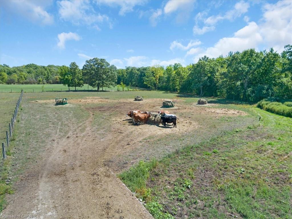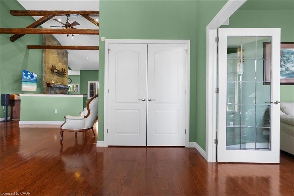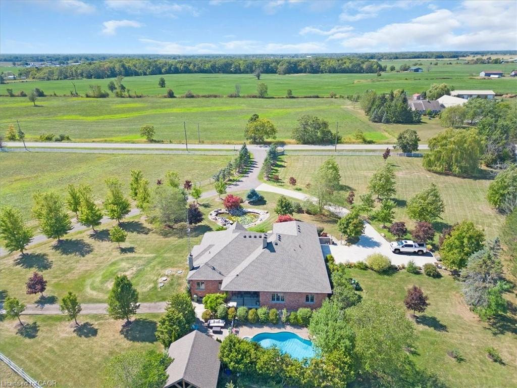 Welcome to a once-in-a-lifetime 40-acre ranch in beautiful West Lincoln, where craftsmanship, comfort, and countryside living come together in perfect harmony. Designed and built by the owner-builder, this sprawling custom bungalow offers the space, quality, and character you’ve been searching for. Step inside to a grand, open-concept main living area featuring a sun-filled great room with wood-beam ceilings, a natural wood fireplace, and seamless flow between the kitchen, dining, and family spaces, perfect for gathering and entertaining. The smart split-bedroom layout places the private primary retreat with ensuite bath and walk-in closet on one side of the home, while the remaining bedrooms rest on the opposite wing for quiet family comfort. The lower level is fully finished with a complete in-law suite and a separate entrance, ideal for multi-generational families or added income potential. Outside, enjoy a country lifestyle with two impressive barns/workshops, an in-ground pool with cabana, a double-car garage, and abundant open land ready for your business, hobby farm, or simply the joy of wide-open space. Featuring drilled wells, septic, cistern, and hardwood floors throughout, this property blends functionality and beauty at every turn. Only 25–30 minutes from Hamilton, yet a world away from the city bustle. Seeing truly is believing, this remarkable ranch must be experienced in person to appreciate its scope, serenity, and possibilities.
