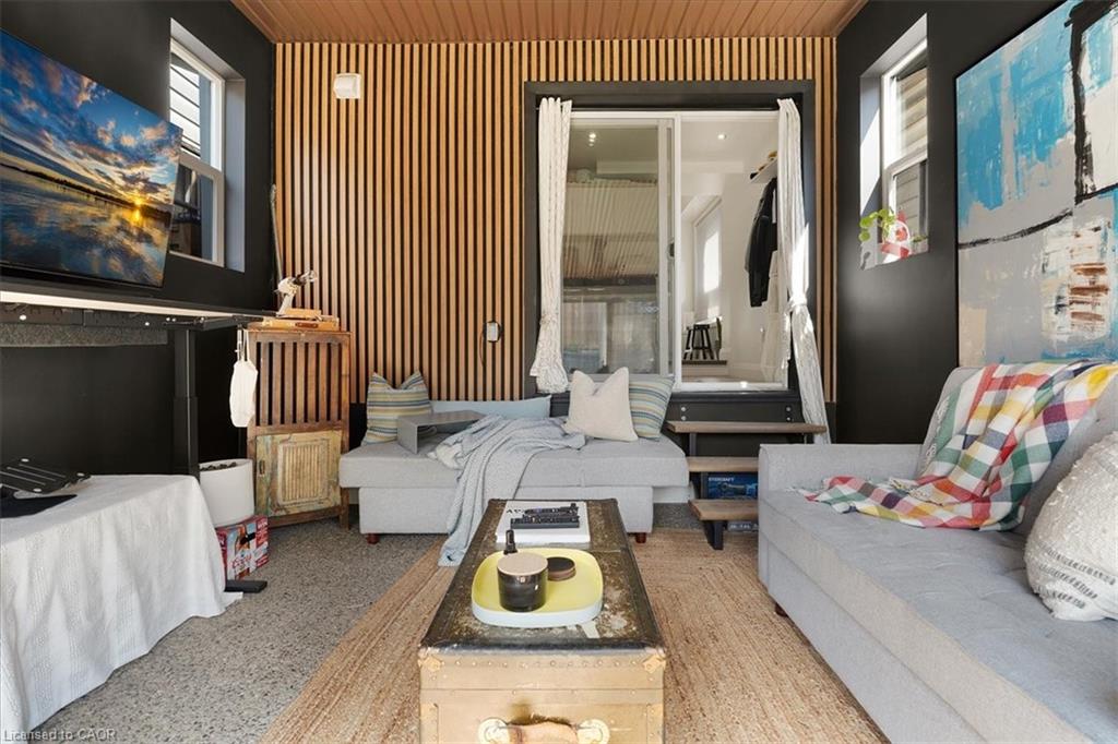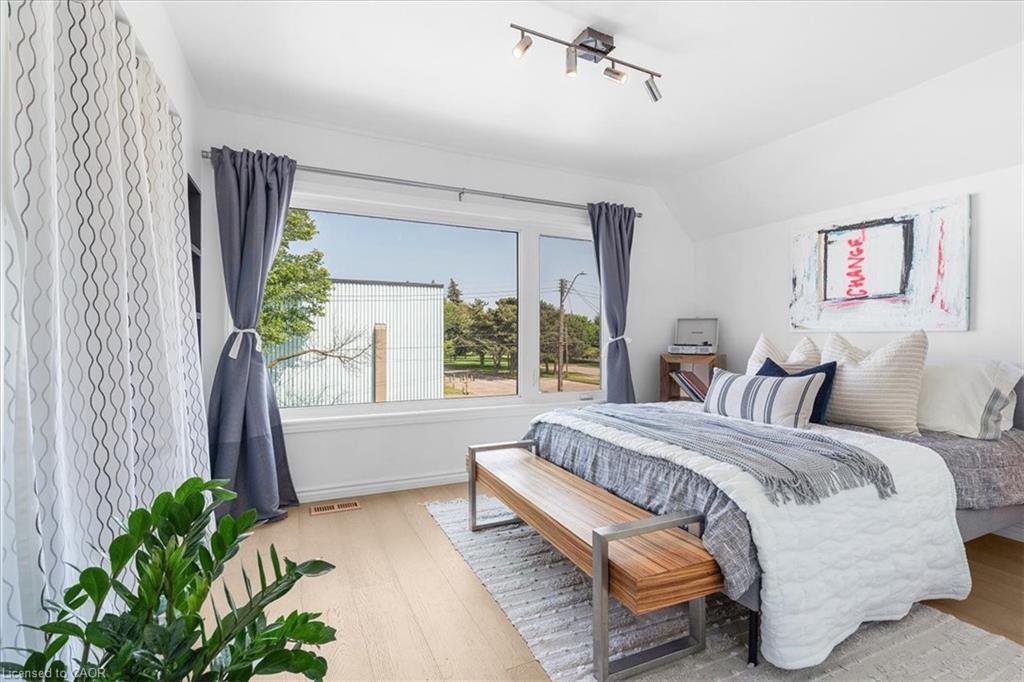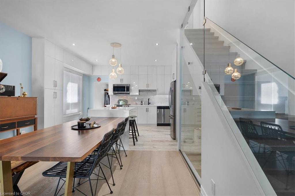 Welcome to 575 Mary Street, a stunningly unique property steps from the water’s edge in the north end of Hamilton, where a tight-knit family transformed a house into a home during the quiet of Covid lockdowns. Step inside this fully renovated gem, seamlessly blending modern comforts with warm, inviting spaces, all crafted by a talented Hamilton native and international artist. The artistic flair captivates, merging the natural light of the outdoors with glass, cement, and crisp whites throughout. At the heart of the home is a stunning kitchen featuring floor-to-ceiling cabinetry, a four-seater waterfall quartz island, and very likely the most interesting matching Italian porcelain flooring and backsplash combo you have ever seen. The front porch, drenched in light from two skylights, is perfect for sipping morning coffee while enjoying the sunrise. On the opposite side of the house, cozy evenings come alive by the newly installed wood-burning fireplace, which warms the all-season backyard patio designed for both entertaining and relaxing after a long day. This home also features an innovative and massive office space seamlessly integrated into the main bedroom, ideal for remote work or midnight inspiration. With HUE smart lights throughout, you can easily set the perfect mood for any occasion. In the last four years, recent upgrades include Neal installed roof coverings, a high-efficiency furnace, all new flooring, windows, all siding, main floor powder room, brand-new kitchen and laundry appliances. This means you can move in and enjoy modern living! With three spacious bedrooms plus an office, this home provides ample space for families, guests, or your creative pursuits. Plus, convenience is key with two included parking spaces and an upgraded fast-charging EV connection port already installed. Come fall in love with this art piece of a home. A space ready for some new dreamers and creative spirits!